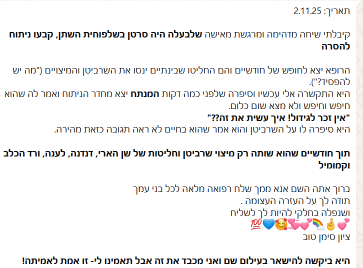 תודה לציון היקר על התמיכה והסיוע, הרבה בריאות לכולם ובשורות טובות 🙏❤️